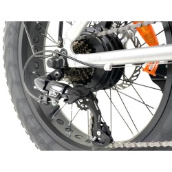 Cadre ouvert (col de cygne) en aluminium pliant - Taille du cadre 41cm - Cintre en aluminium - Potence en aluminium - Poignées ergonomiques - Roue en aluminium 20 pouces avec réflecteurs - Pneus CST basse pression (larges et souples) 20x4.0 très confortables - Pression 0,4 à 2,1 - Frein à disque mécanique AV / AR (160mm) - Tige de selle basculante pour extraire la batterie 27.2 - Selle en mousse très confortable - Transmission chaine - Dérailleur Shimano 7 vitesses - Fourche télescopique en aluminium 90mm de débattement verrouillable - Hauteur entrejambe (sol/selle) 84cm à 105cm - Pédalier en aluminium - Pédales repliable avec réflecteurs - Garde-boue en aluminium AV / AR - Porte-bagages 25kg - Béquille latérale - Poids du vélo 25.5kg