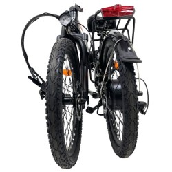 Moteur Brushless RKS 36V 250W sur roue arrière, à capteur de rotation - Batterie Lithium-Ion 316Wh 36V 8.8Ah verrouillable (2 clés fournies) - Poids de la batterie 2.8kg - Temps de charge 4-6 heures - Autonomie +/- 40km - Vitesse maximum avec l'assistance : 25km/h - 5 niveaux d'assistance - Feu à LED avant alimenté par la batterie avec commande au guidon - Eclairage arrière sur pile avec 3 positions (dont 2 clignotantes) - Petit chargeur fourni avec témoin LED (ROUGE : en charge et VERT : chargé)